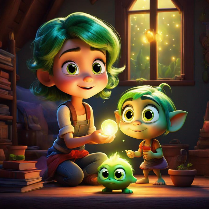 Once upon a time, in a magical land far away, there lived a young girl named Luna the Luminous. Luna had shimmering silver hair that sparkled in the moonlight, and her eyes were like pools of kindness and understanding. Luna loved to explore the enchanted forest near her home, where she would find all sorts of wonderful things. One day, as Luna was wandering through the forest, she stumbled upon a tiny, glowing seed. It was unlike anything she had ever seen before.
